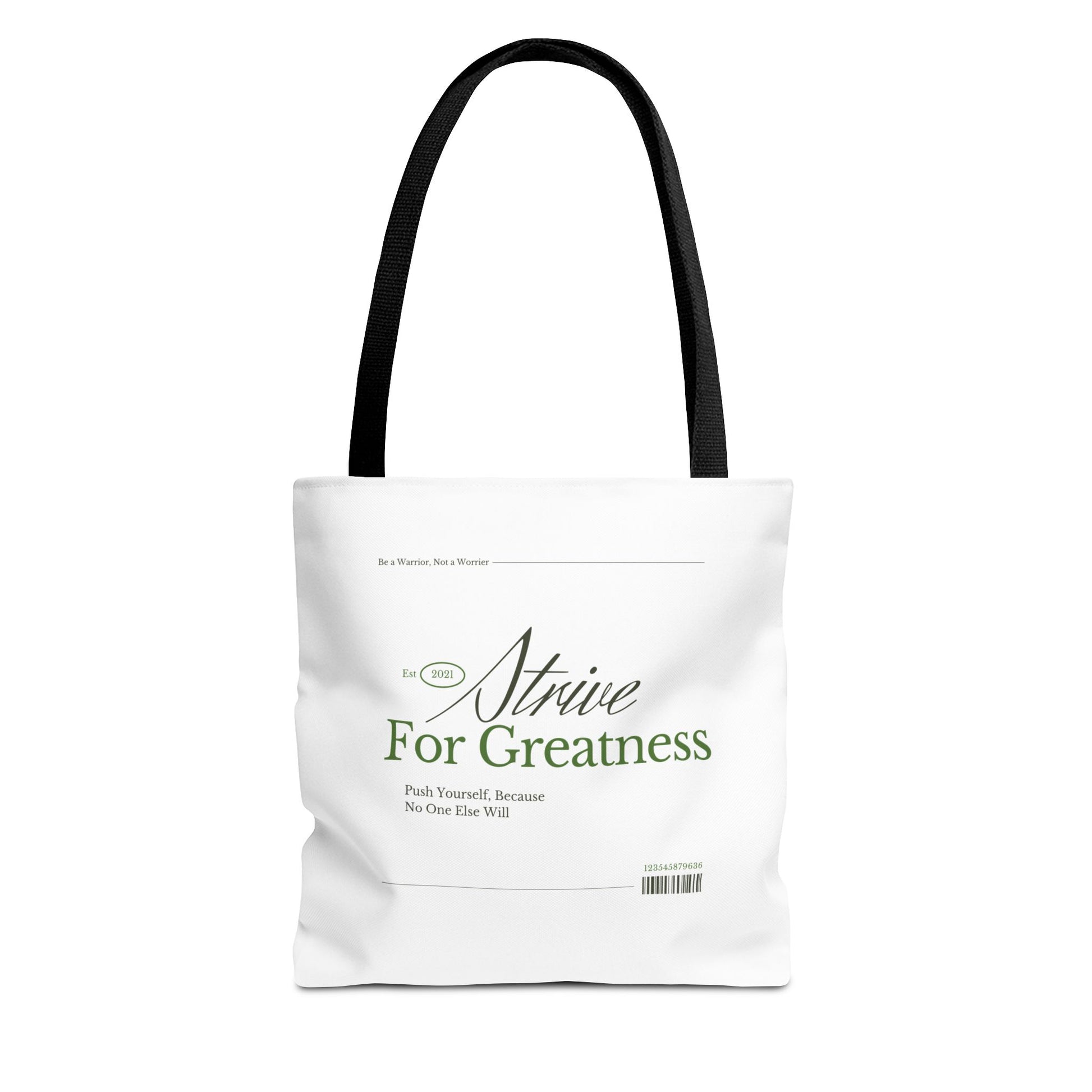 Carry your ambition and positivity wherever you go with our "Strive For Greatness" Tote Bag. Designed for those who thrive on motivation and empowerment, this stylish yet practical accessory serves as a constant reminder to stay focused on your dreams and goals. Featuring a minimalist design and the inspiring phrase, “Strive For Greatness,” it’s more than just a tote—it’s a symbol of drive and determination.